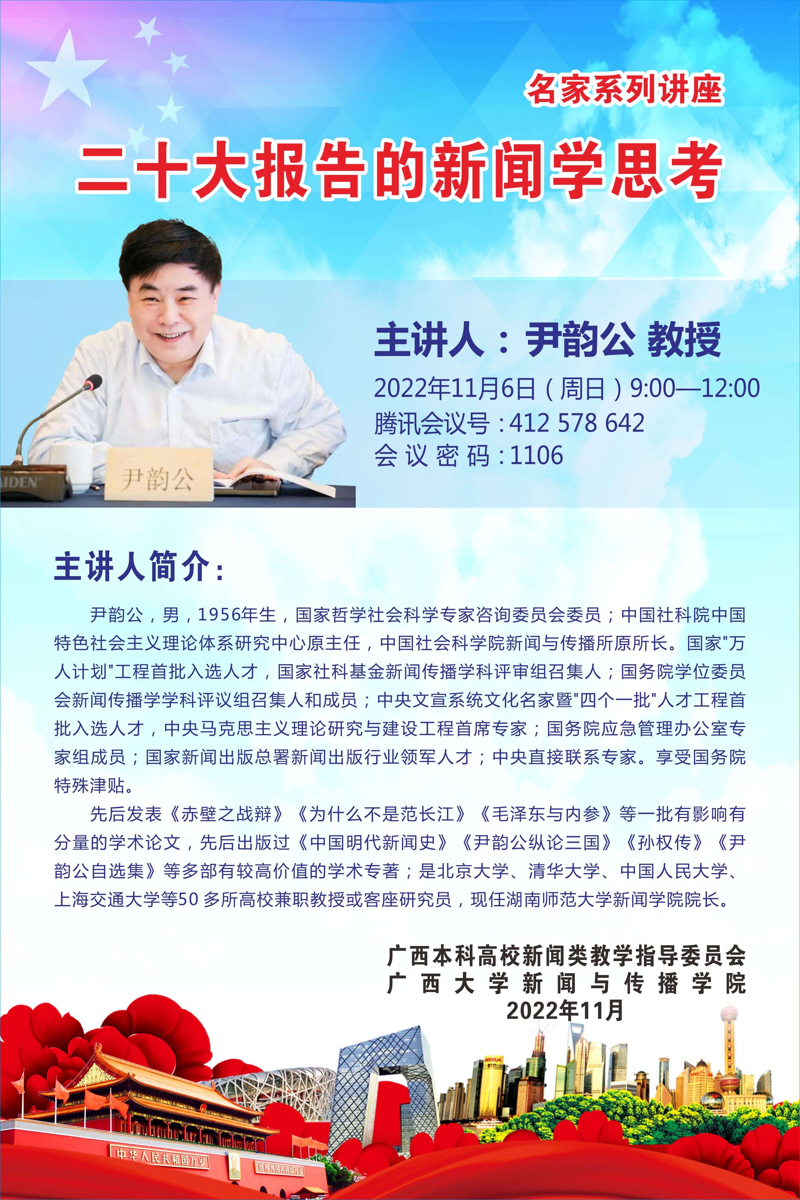关于举行名家系列学术讲座的通知(五):尹韵公教授