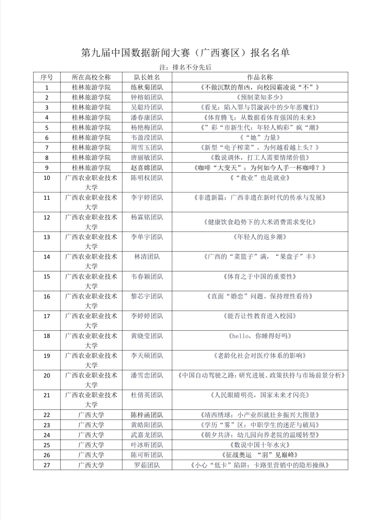 第九届中国数据新闻大赛广西壮族自治区区赛报名名单公示
