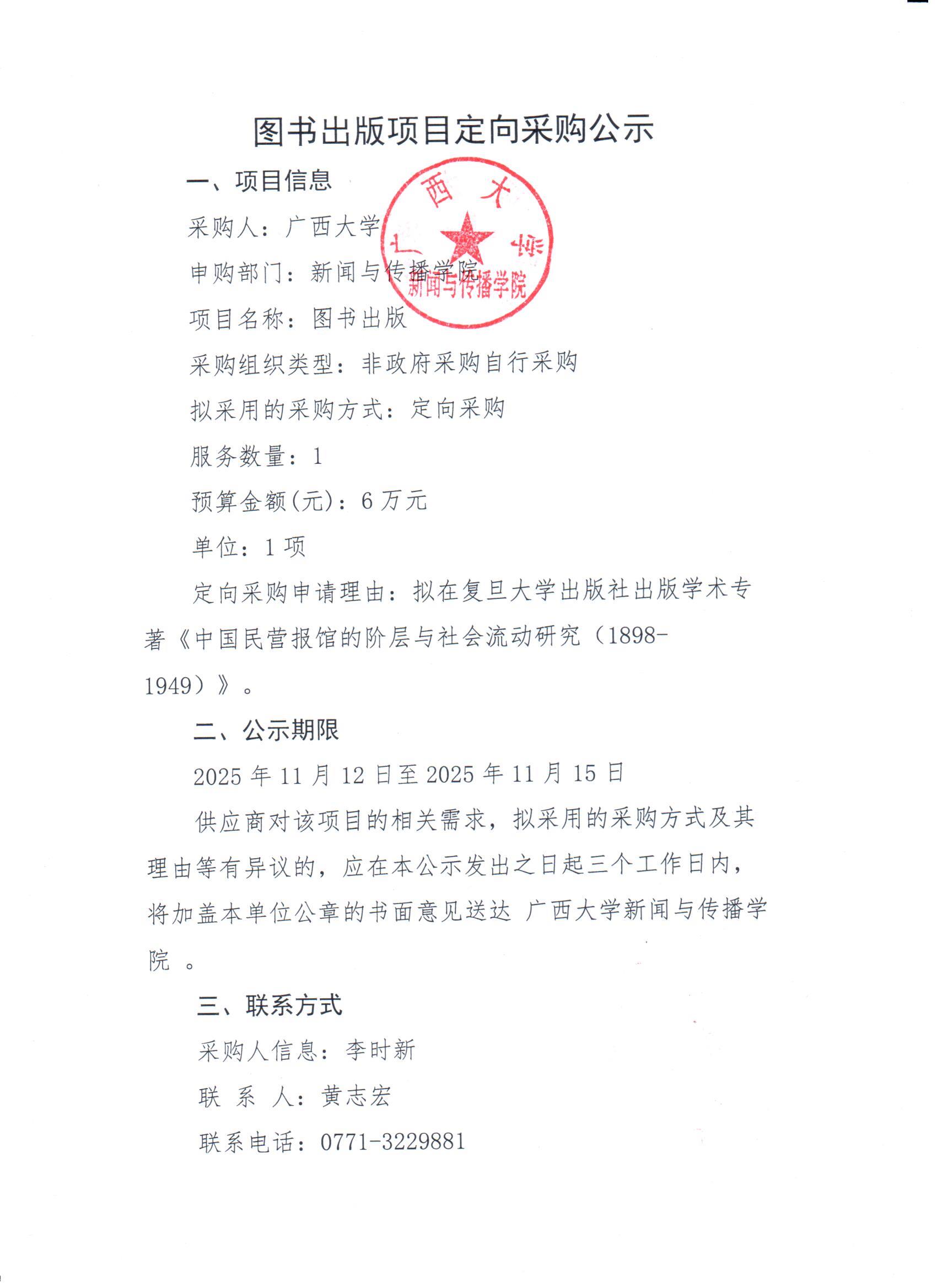 伟德国际1949李时新老师图书出版项目定向采购公示