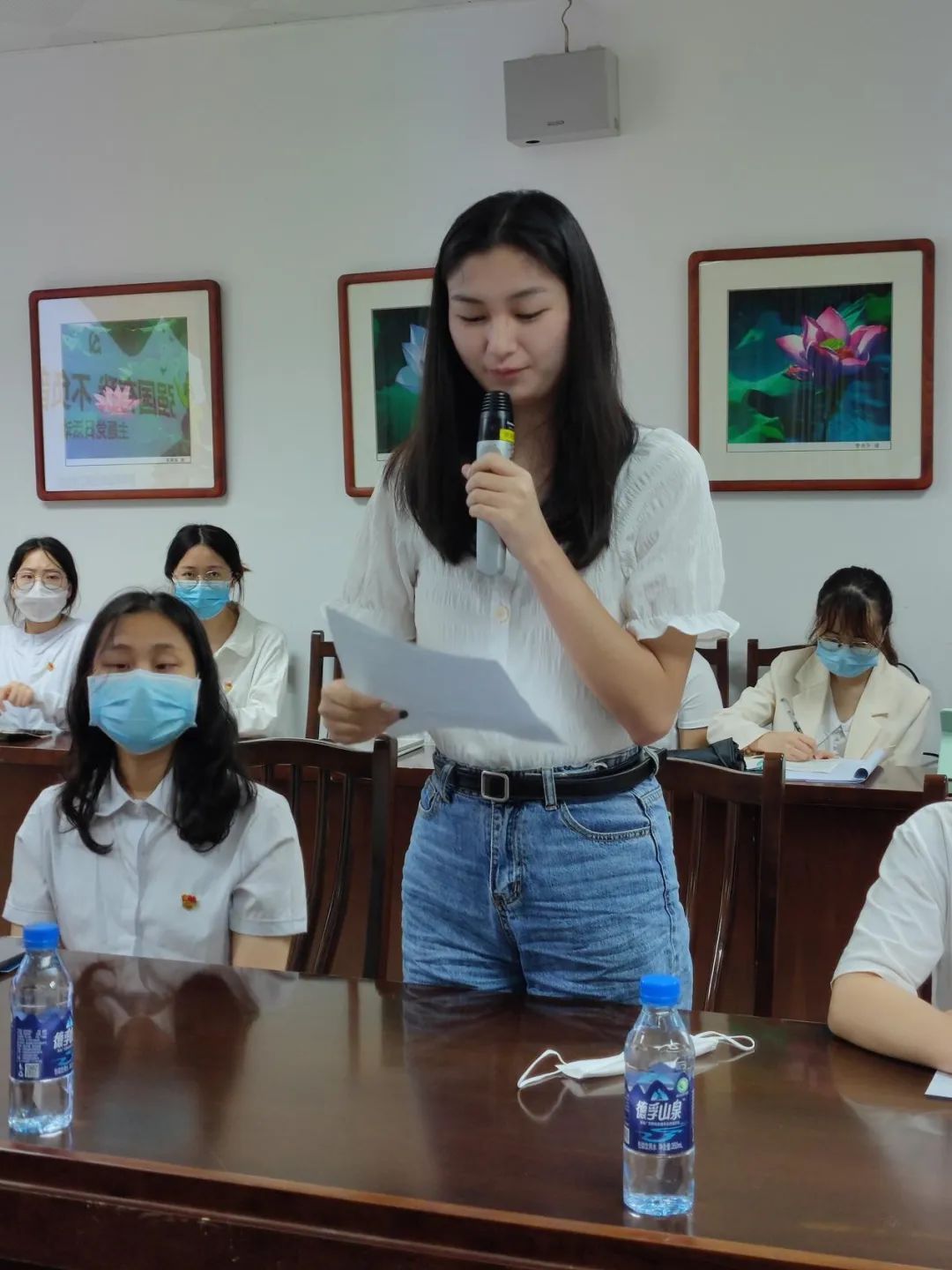 随后,新闻二班党支部副书记于晴、组织委员徐家亮饱含深情地朗诵了《五月的梦想》,预备党员蒙甜甜、李秀悦、程博、唐诗共同朗诵了《青春之歌》。朗诵结束后,李继兵书记就同学们的朗诵,从如何练就标准的普通话、挖掘作品丰富激昂的情感、朗诵应有的仪态和气势等三方面进行了点评和指导。