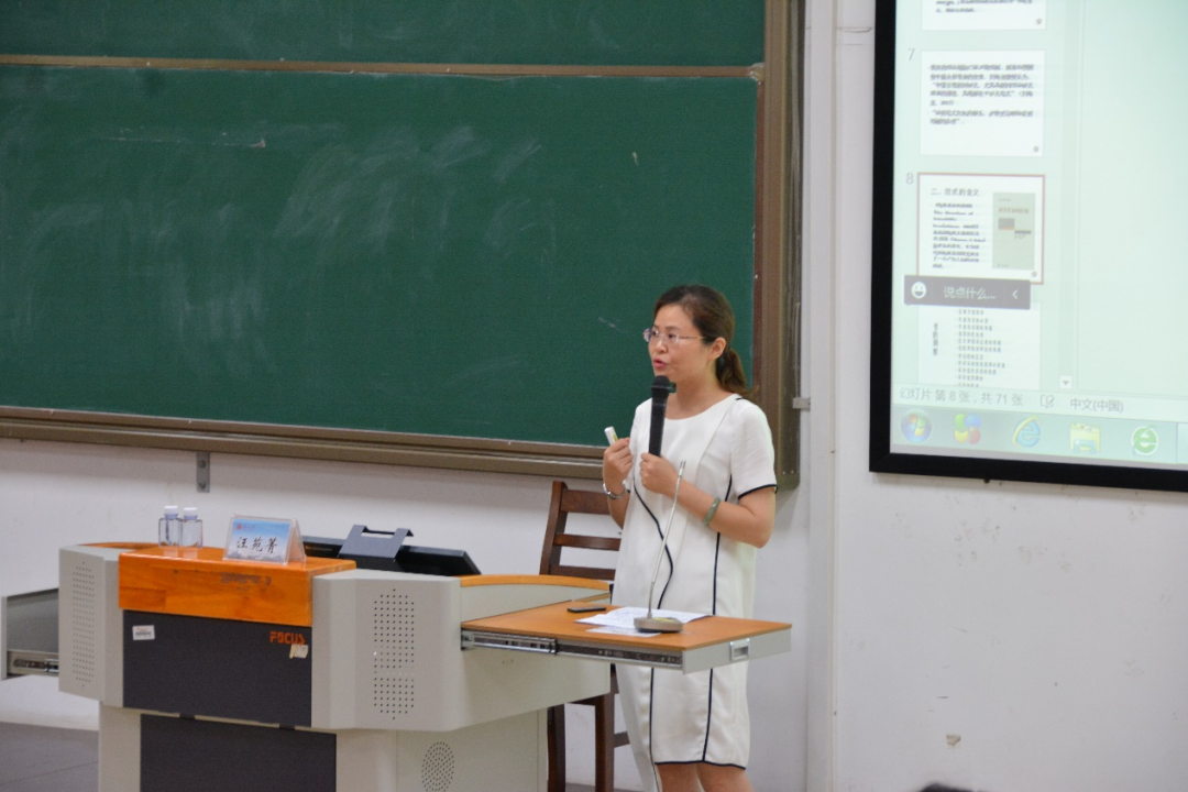 紧接着,汪老师从托马斯·库恩所著的《科学革命的结构》入手,向大家深入浅出地解释了“范式”的含义。她解释说,“范式”是源于《科学革命的结构》的概念,即常规科学公认的理论、实践基础规则和标准。“范式”包含三个方面:科学的理论体系;运用这一理论体系的心理认识因素;指导和联系理论体系和心理认识的自然观。