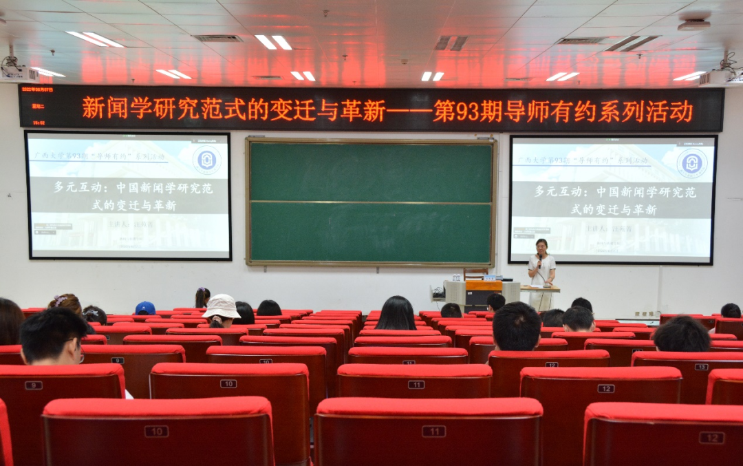 本次导师有约活动,汪苑菁老师结合自己的学术研究历程,生动细致地对中国新闻学研究范式的变迁与革新进行了剖析,引导同学们在研究生阶段更高质量地开展学习和研究。