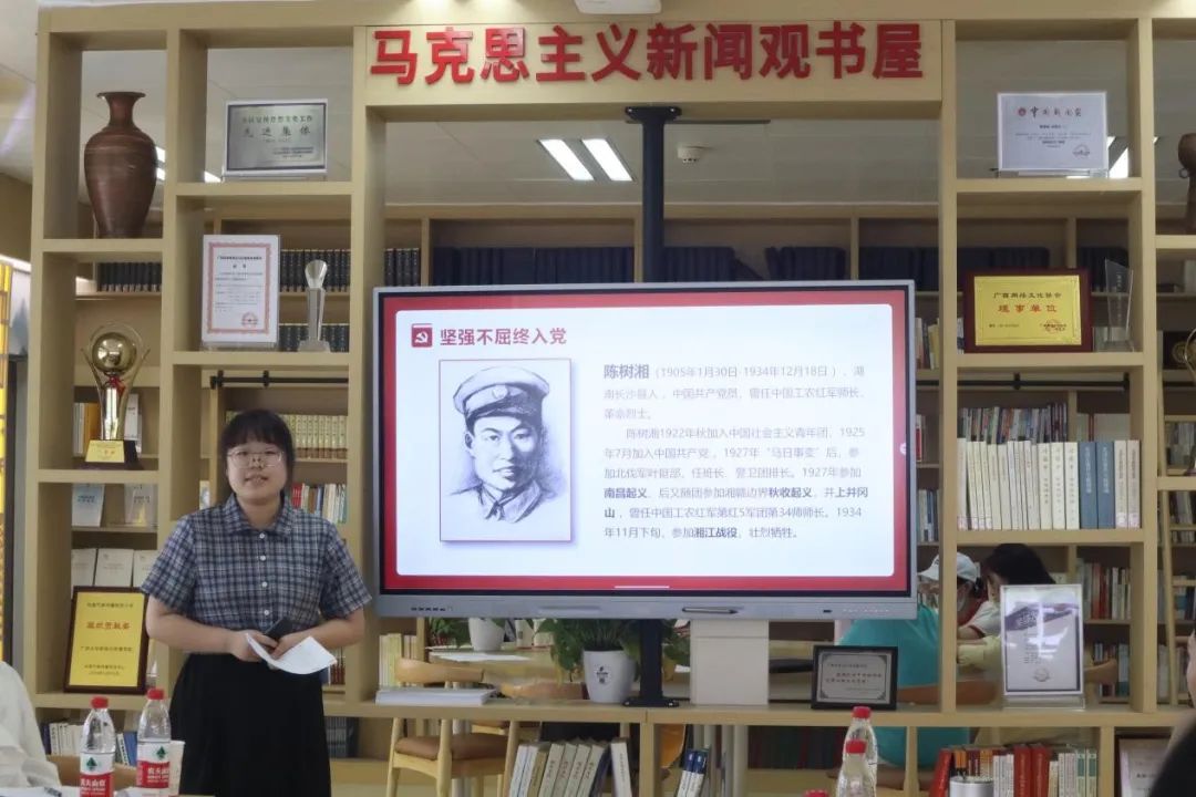 红色资源承载着一个个闪光的历史记忆,是党史学习教育的“精神富矿”。为迎接党的二十大胜利召开,进一步推动党史学习教育常态化,5月31日下午,公司在马克思主义新闻观书屋组织召开“重温红色记忆,书写青春芳华”故事分享会。公司党委副书记银建、团委书记刘梦娟以及播音与主持专业李朝珍老师出席本次活动。本次分享会共有13位同学参与,在重温红色记忆中传承革命精神,汲取不断奋进的红色力量。