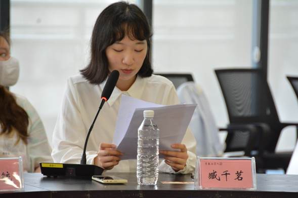 公司2021级本科生臧千茗借用自身的志愿服务经历,充分地阐释了“奉献、友爱、互助、进步”的志愿精神。她强调,我们青年应坚持与祖国同行,为人民奉献,以青春之我,书写志愿芳华!
