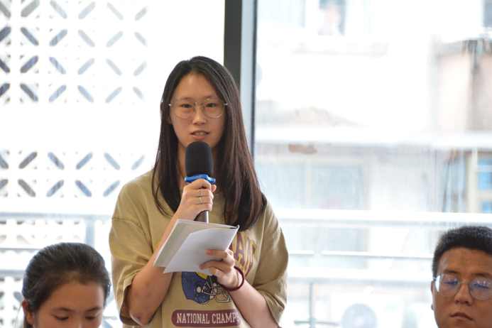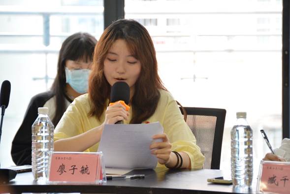 校研会主席团杨安琪则结合自己经历,感叹青年学子应当珍惜青春,在这过程中明确奋斗目标并为之奋斗一生。