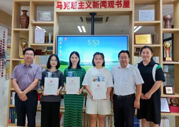 老师们与三位同学合影留念