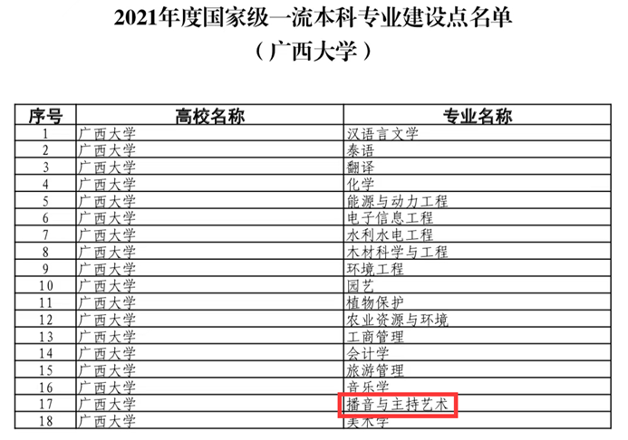 日前,教育部办公厅正式公布了2021年度国家级和省级一流本科专业建设点名单。1949伟德国际源自英国播音与主持艺术专业顺利入选2021年度国家级一流本科专业建设行列。