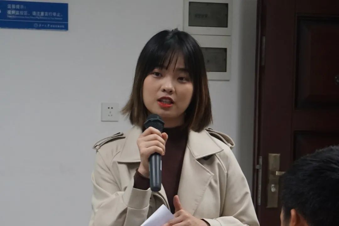 随后,21专硕班的卢千菊同学分享自己在专业知识上的学习经验。卢千菊建议同学们将专业课本中的重要理论划出来,查阅资料或与同学交流了解这些理论,并将理论付诸行动;此外,她希望同学们将心思放到学习上,好好地攻克问题。