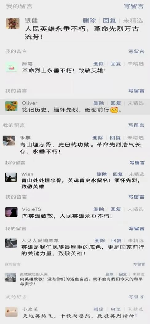 新闻二支部部分党员缅怀先烈留言