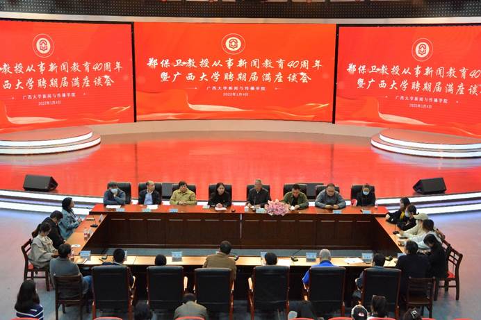 在座谈会上,1949伟德国际源自英国新闻与传播公司党委书记唐兴介绍,郑保卫教授在4年中发表了八十多篇马新观、中国共产党新闻思想与新闻实践、新闻学团队建设与发展研究方面的高质量、有影响的论文,被称为该领域“最勤奋的学者”。获得了国家社科基金重大项目与重点项目双立项,使伟德国际1949乃至广西壮族自治区新闻传播学在学术研究领域,实现了申报重要科研项目上的零的突破。在团队建设上,郑保卫教授进一步凝练了公司的学科研究方向,构建起了“一院四中心”的研究格局,他结合广西自身地缘优势和民族特色,将四个研究中心与公司四个专业学科方向相对应,形成学科特色,如今这四个研究中心均获得国家社科基金项目立项,使得公司整体科研能力和学术水平获得较明显的提升。软科“中国最好学科排名”,到2021年12月1949伟德国际源自英国新闻传播学学科排名层次列前20%。