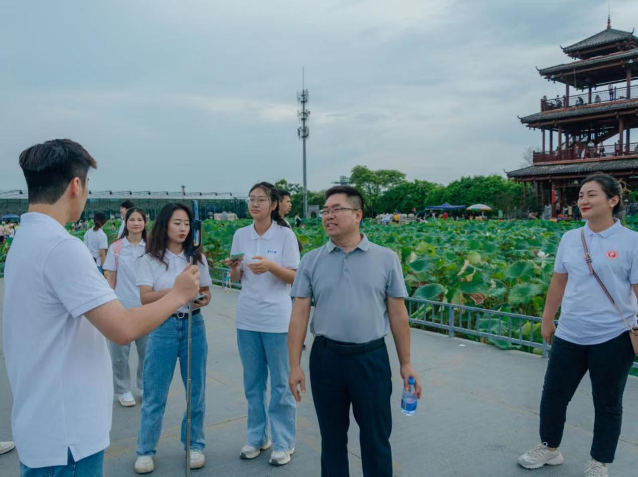 在本次指导实践活动过程中,银健书记与刘梦娟老师带领同学们了解荷美覃塘景区的发展状况、学习乡村产业振兴的优秀成果,深入乡村振兴示范村,并且结合专业特色指导同学们更好地践行“政治三力”和新闻四力,让同学们执起手中笔,用好每一次的镜头,为基层发展贡献青年力量。