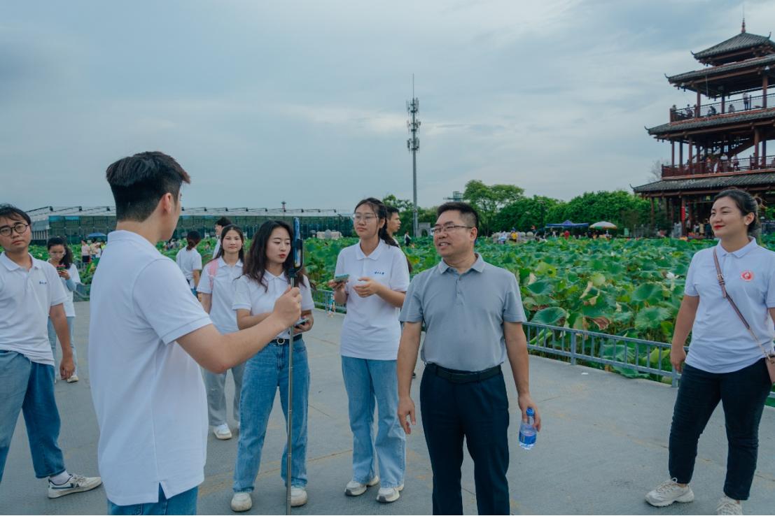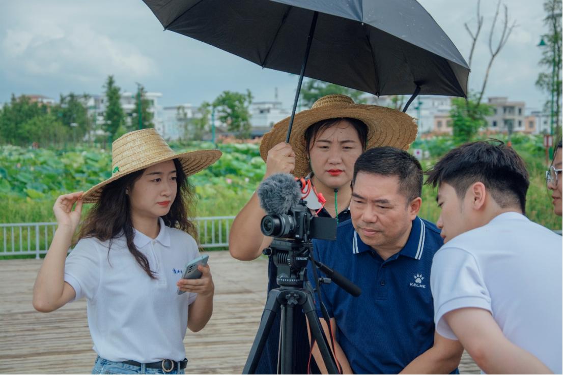 7月31日清晨,银健书记、刘梦娟老师指导实践团队进行“求真传美”文旅宣传视频拍摄。实践团队先后前往荷韵廊、听雨亭、醉莲阁、莲心岛、濯心台等地点,用新闻学子的声音和画面,展现独特的覃塘之美。银书记表示:“大家在公司进行了专业知识的学习,需要积极投身实践,在实践中检验自身。