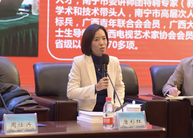 伟德国际19492003级员工、南宁广播电视台融媒体中心主任唐彩红为大家带来她的从业经历以及对新闻行业的感悟。首先,她对母校的变化表示惊叹,对母校的邀请表示感谢。她的分享主要分为寻梦、追梦和圆梦三个方面。寻梦方面,她结合自己跨学科考研的经历向同学们阐述心有理想的意义,她说,理想可以由八个字总结,即“爱你所爱,追寻理想”,即“使命、愿景、价值观”。同学们应仰望星空,脚踏实地,将自己所热爱、所擅长的事与新闻专业学习结合起来。追梦方面,她指出,追梦需要有四种能力。一为学习力,同学们要进行政治学习、业务学习、人文学习以及素质学习;二为行动力,想到就立即行动;三为创新力,新闻传播工作需要“创新永远在路上”;四为钝感力,即对抗挫折和专注专业精进的能力。同学们要专注于提高个人能力,不要对外界事物太过敏感,让自己的不可替代性更强。圆梦方面,她指出,要做到“跟对一个人,团结一群人,感恩所有人”。用榜样、团结、感恩的力量,实现我们的人生理想。