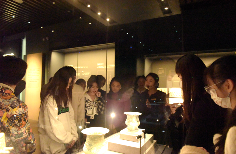 随后,同学们来到了馆藏瓷器陈列展厅。这里的瓷器种类繁多,其年代跨越了东汉到明清时期。通过萧潇的讲解,同学们对瓷器的历史、特点以及其在中华文化中的地位有了更深入的了解。同学们在欣赏精美瓷器的同时,也学习到了更多关于中国瓷器制作和演变的知识。