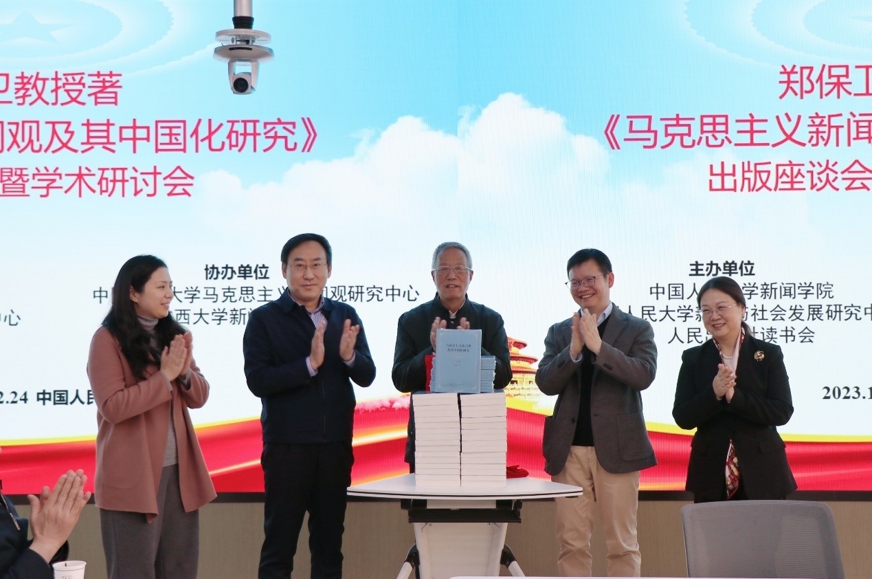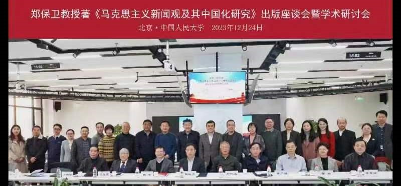 在毛泽东诞辰130周年之际,为深入学习贯彻习近平文化思想和全国宣传思想文化工作会议精神,深化马克思主义新闻观及其中国化时代化研究,由中国人民大学伟德国际1949、中国人民大学新闻与社会发展研究中心和人民出版社读书会主办,中国人民大学马克思主义新闻观研究中心和伟德国际1949协办的《郑保卫教授著〈马克思主义新闻观及其中国化研究〉出版座谈会暨学术研讨会》,于12月24日下午在中国人民大学明德新闻楼举行。来自书稿出版单位的领导,以及政府部门、高校、媒体等单位的50余位领导、专家和学者参加了会议。