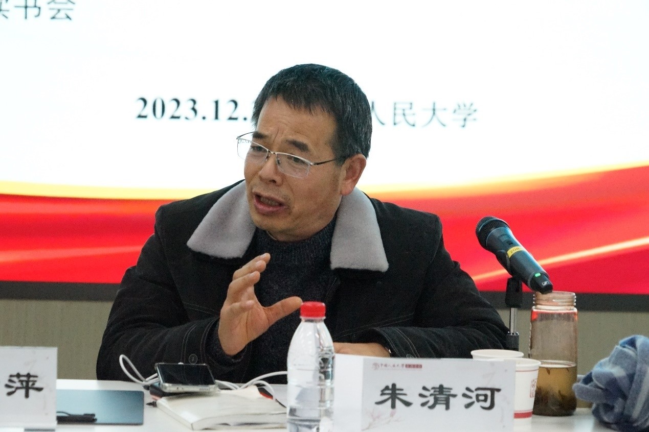 韩立新以“中国两种新闻学源流考——学习郑保卫教授《马克思主义新闻观及其中国化研究》体会”为题作了分享。他表示,郑老师的新著指出了中国新闻学百年发展史上的两个学术传统,一个是中国传统新闻学,一个是社会主义新闻学,并从马克思主义经典作家的新闻思想、中国共产党新闻史、中国近现代新闻史等多个方面进行了深入论述,使人在纷繁复杂的历史百流中看出脉络和渊源,并指明了中国特色社会主义新闻学理论建设的方向,可谓是中国新闻学研究道路上新起点的里程碑,将指引中国新闻学研究进入新阶段。通过学习这本著作,我认为要认清实践主体新闻学与产业新闻学的区别与联系,要推动实践主体新闻学从政策、经验等层面的知识形态,发展到理论、方法的知识形态层面来,建设影响世界的实践主体新闻学理论体系。