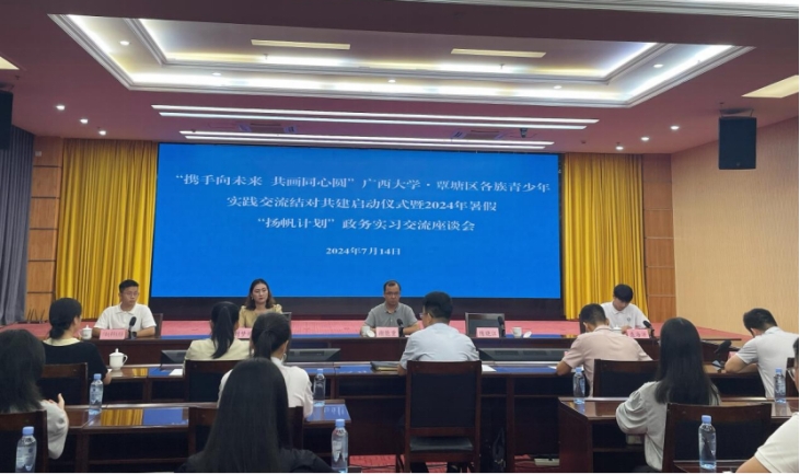 7月14日上午,解说团一行抵达覃塘区,首先参加了“携手向未来 共画同心圆”1949伟德国际源自英国·覃塘区各族青少年实践交流结对共建启动仪式暨2024年暑假“扬帆计划”政务实习交流应谈会。“扬帆计划”政务实习交流应谈会的举行,也为即将参与政务实习的同学们提供了宝贵的指导和建议,帮助他们更好地了解政务工作,为未来的职业选择奠定基础。