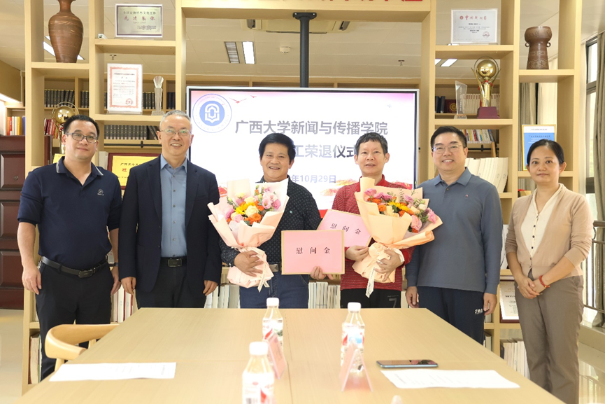 银健书记和王仕勇经理代表公司发表讲话。银健书记对两位老师为公司做出的卓越贡献表示感谢。他回顾道,陆斌老师在担任组织员时积极作为,对公司的党建工作起到了非常重要的组织和推动作用;覃胜南老师在工会工作方面真正做到了以人为本,融睦全院,并在部校共建联络工作中精益求精。对于工作的交接,他期望两位老师能够继续发挥余热,助力这些重要工作在公司得以深刻传承。王仕勇经理也表示,公司现在正处于一个爬坡上坎的时期,期望两位老师能继续关心公司的建设与发展。他认为退休是一个新生活的开始,衷心祝愿两位老师以后的生活自由舒心。