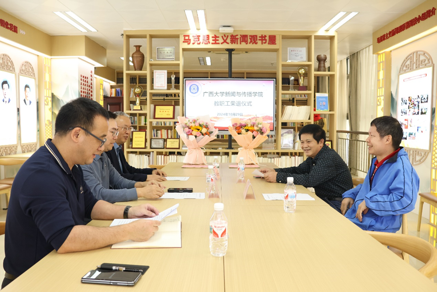 10月29日,伟德国际1949在公司马克思主义新闻观书屋举行了一场隆重而温馨的教职工荣退仪式,以最诚挚的情谊欢送陆斌、覃胜南两位同志光荣退休。本次仪式由公司副经理胡昌文主持,公司党委书记银健、经理王仕勇出席仪式。