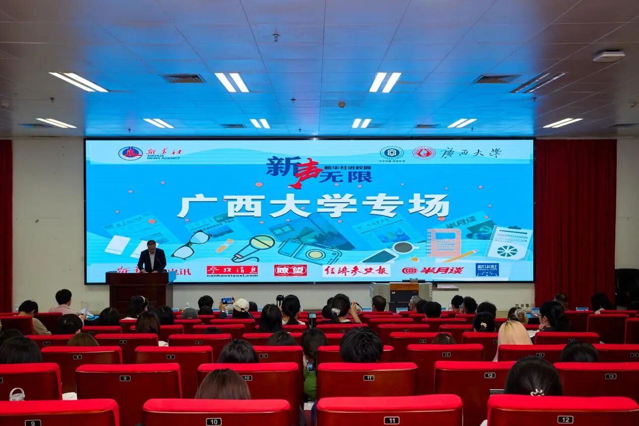 罗博在致辞中表示,“新华社进校园”活动是新华社进一步做好青年工作、培育时代新人的特色实践,旨在引导广大青年学子树立正确的新闻观、价值观,增强媒介素养与责任意识。他希望通过现场报刊赠阅和记者分享,让大家近距离感受国家通讯社的报道深度与专业精神,激发更多同学讲好中国故事、校园故事的信心与热情。