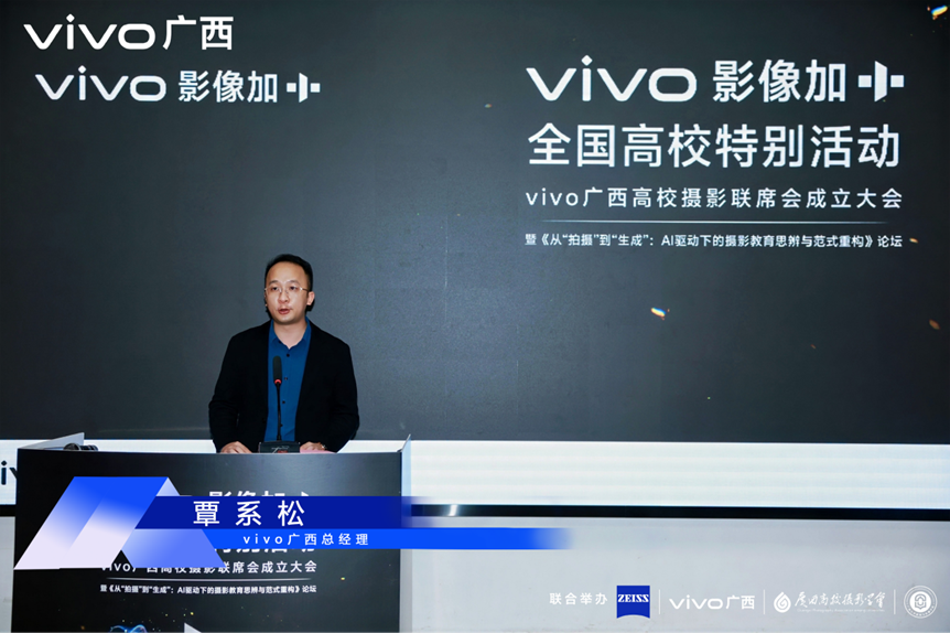 vivo广西总经理覃系松表示,vivo将以“长期主义”投入共建,将联席会打造成开放、前沿的影像共创社区,让科技真正照亮每一份创作灵感。