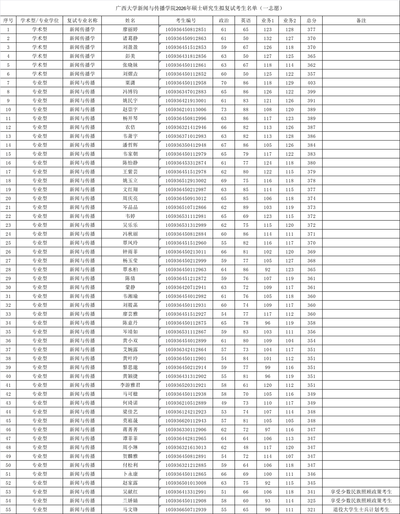 根据《2026年全国硕士研究生招生考试考生进入复试的初试成绩基本要求》的B类考生的分数要求,且符合公司学科专业对外公布的考生复试资格分数线和复试要求,现公布公司2026年一志愿拟复试考生名单。名单详见下表。