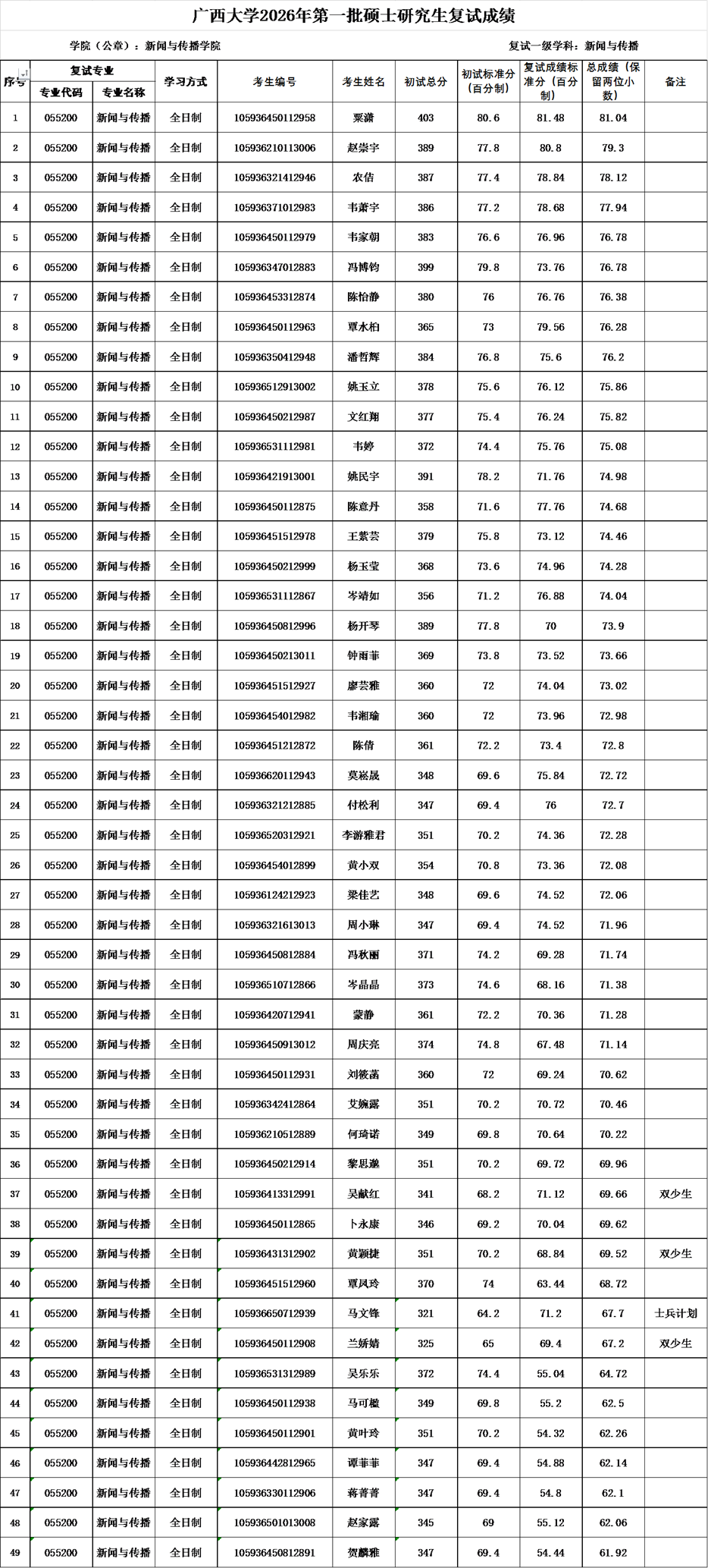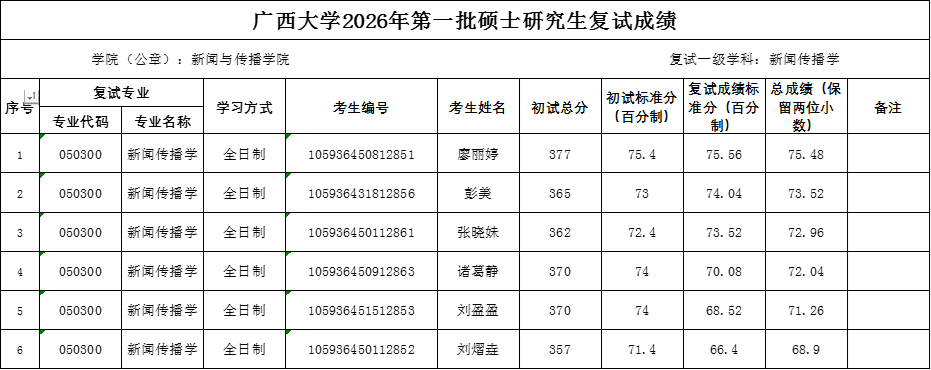 伟德国际19492026年新闻传播学、新闻与传播一志愿考生复试成绩如下,如有异议,请联系伟德国际1949研究生办公室反映,联系电话:0771-3229833。