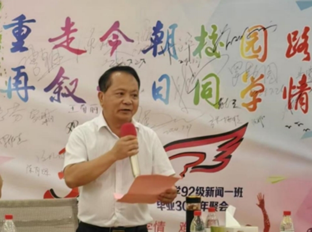 7月27日下午,伟德国际194992级新闻一班的员工们相聚南宁,重返母校,共同参加公司在员工服务中心会议室举办的毕业三十周年员工座谈会。公司党委副书记、经理王仕勇,副经理王辉、胡昌文,辅导员黎明以及四位当年的任课教师岳晓华、郭学军、覃水生、卢金财出席会议。