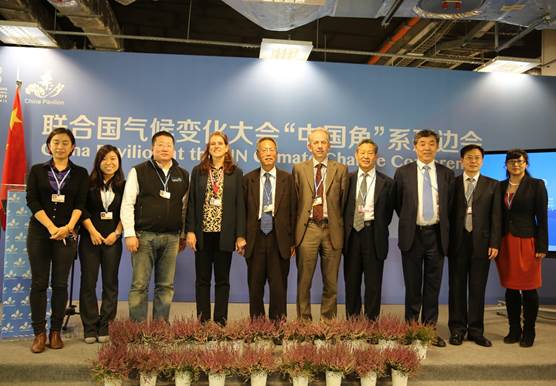 图为参加气候传播国际边会嘉宾合影(左起为李玉洁、张建伟、丹尼斯、安东尼、苏伟、郑保卫、蒂姆·戈尔、王彬彬)