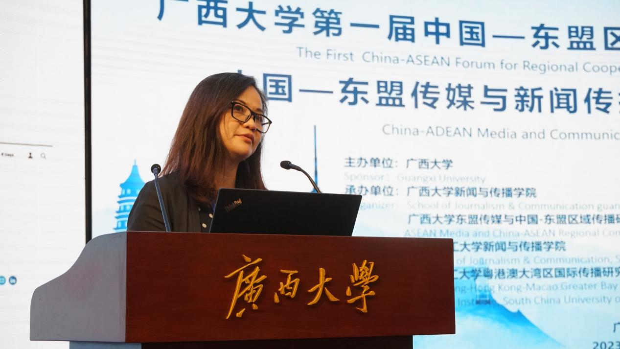 老挝国立大学语言公司大众传播系副主任苏欣作题为《如何应对新媒体给新闻与传播教育带来的挑战:老挝国立大学大众传播专业的改革实践》的报告。她介绍了老挝国立大学大众传播系的发展历程、课程设置情况及教学成果。针对新媒体平台兴起对人才培养产生的影响,她认为高校有必要调整课程安排和教学方法,让员工掌握必要的新闻传播技能和专业知识,以帮助员工适应不断变化的新媒体环境。