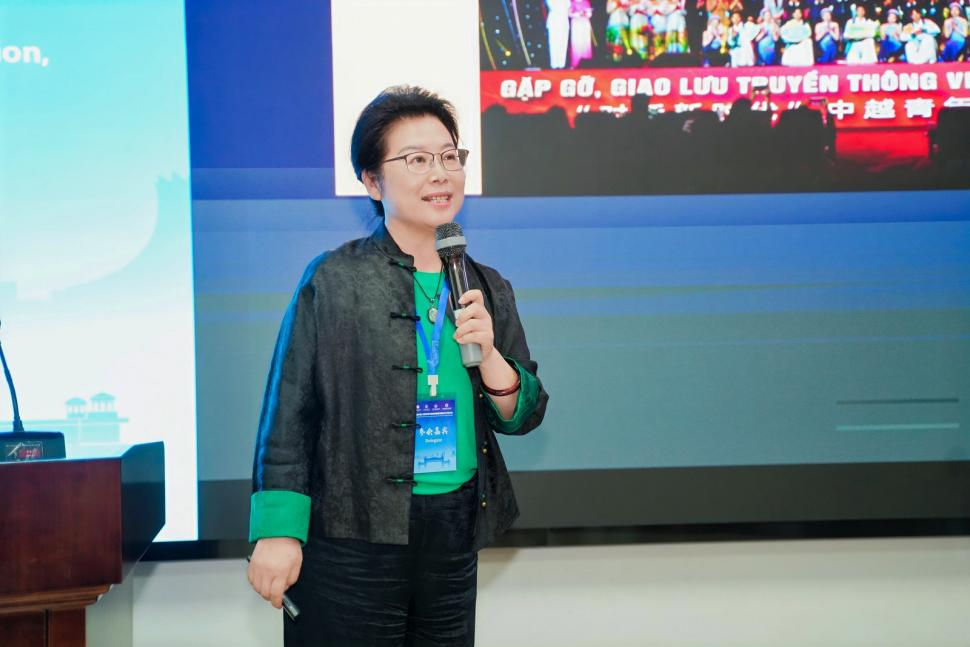 广西民族大学传媒公司经理杨学明作题为《从对话到共建—基于中越青年媒体人对话会的实践启示》的报告。她认为,中越之间的交流对话要“对心”“对题”“对时”,互鉴平台、叙事、价值,共建平台、内容、标准。她表示,未来的国际传播人才培养应有更深的思想、更广的视野、更新的技术、更活的表达、更高的伦理,希望在未来能够把镜头对准人民、把话筒交给青年、把我们的新声传向未来。
