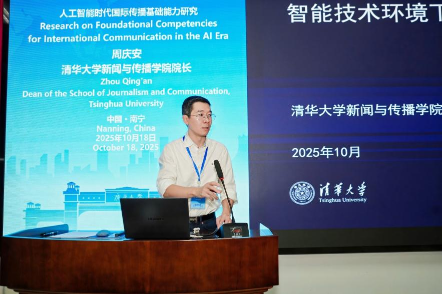 大连外国语大学特聘教授、中华文化海外传播研究中心首席研究员唐润华作题为《人工智能时代国际传播人才培养的变与不变》的报告。他从客观角度探讨了人工智能对国际传播的影响,即算法、数据、算力等怎样提升国际传播效果的维度。他提出了人工智能背景下国际传播人才培养的教学重点与新变化,并认为未来国际传播的人才培养,应该把更多的精力放在广义的国际传播,即跨文化交流方面。