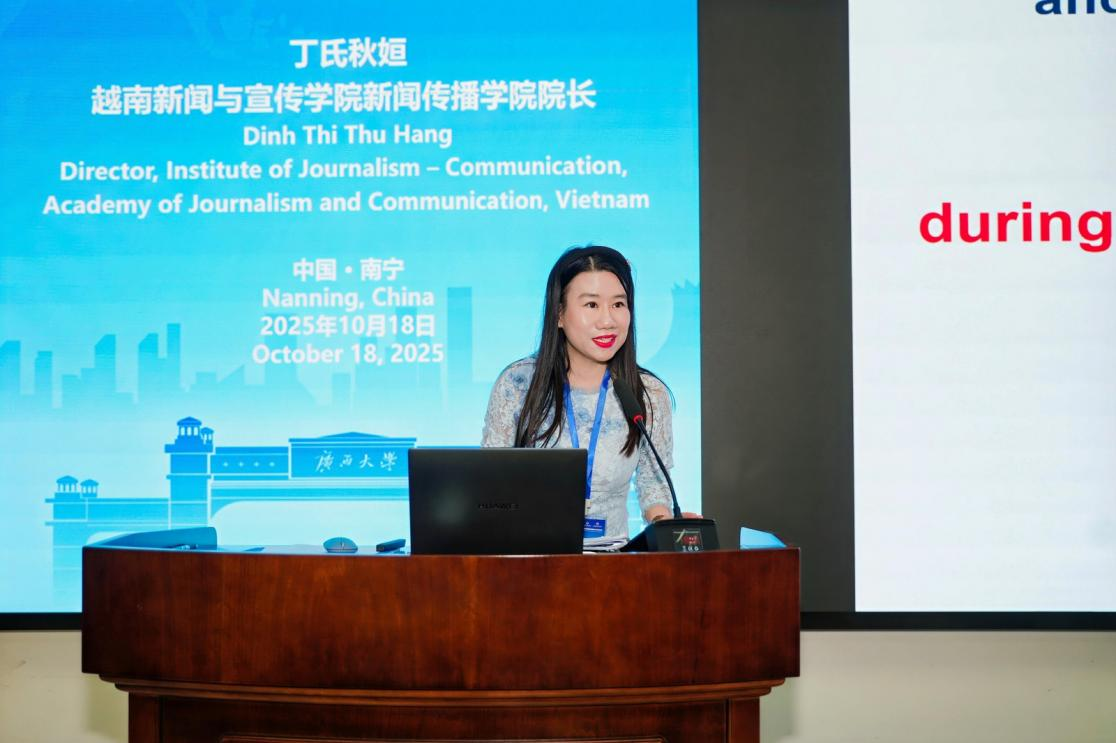 中国传媒大学区域国别传播研究院东盟传播研究中心主任、教育部国际传播联合研究院秘书长黄典林作题为《探索中国—东盟新闻教育合作新路径—中越新闻传播高等教育对话会的启示》的报告。他分享了由中国传媒大学举办的中越新闻传播高等教育对话会的交流成果,总结了中越文化、学术交流的经验。他表示,中国传媒大学未来将积极促进中越两国在新闻传播学科方面的人才与科研合作,构建中越跨文化学术共同体。