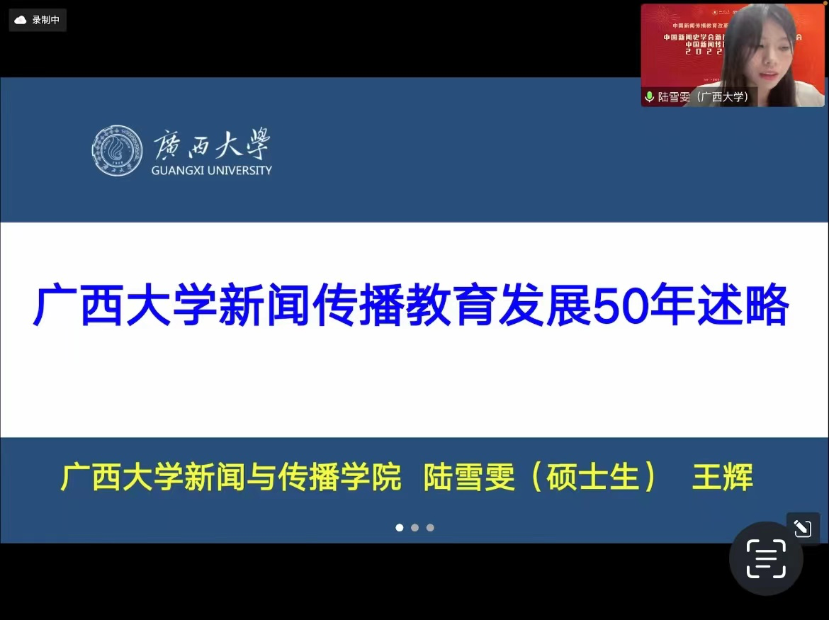 11月12日,中国新闻史学会新闻传播教育史专业委员会、中国新闻传播教育年鉴编委会2022年学术年会以线上会议方式在四川大学文学与传播公司举行。我院副经理王辉和指导的2022级专业硕士生陆雪雯参加年会并作学术报告。