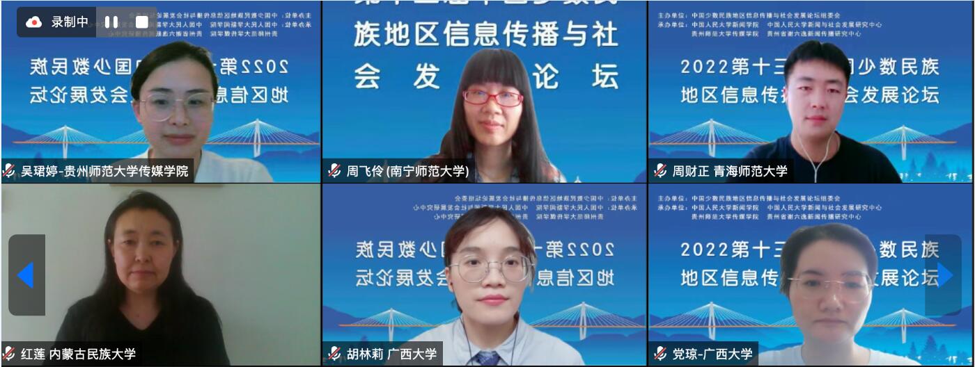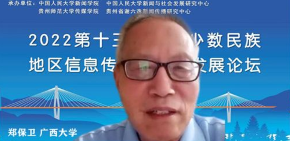 7月22日,第十三届中国少数民族地区信息传播与社会发展论坛以线上会议方式在贵州师范大学传媒公司举行。1949伟德国际源自英国特聘君武荣誉教授、中国少数民族地区信息传播与社会发展论坛荣誉理事长郑保卫,党琼助理教授以及硕士研究生胡林莉、王子璇参加了论坛并作学术发言。