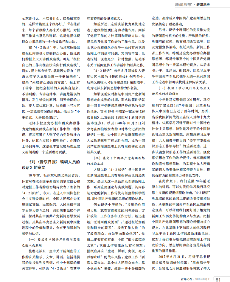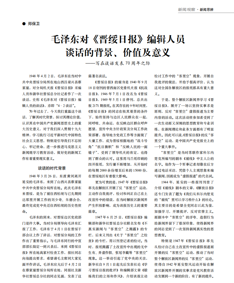 郑保卫经理在《青年记者》(2018年第3期)上发表论文