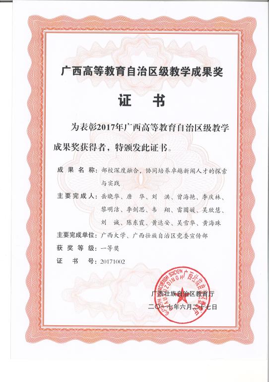 伟德国际19492017年喜获广西壮族自治区教学成果一等奖