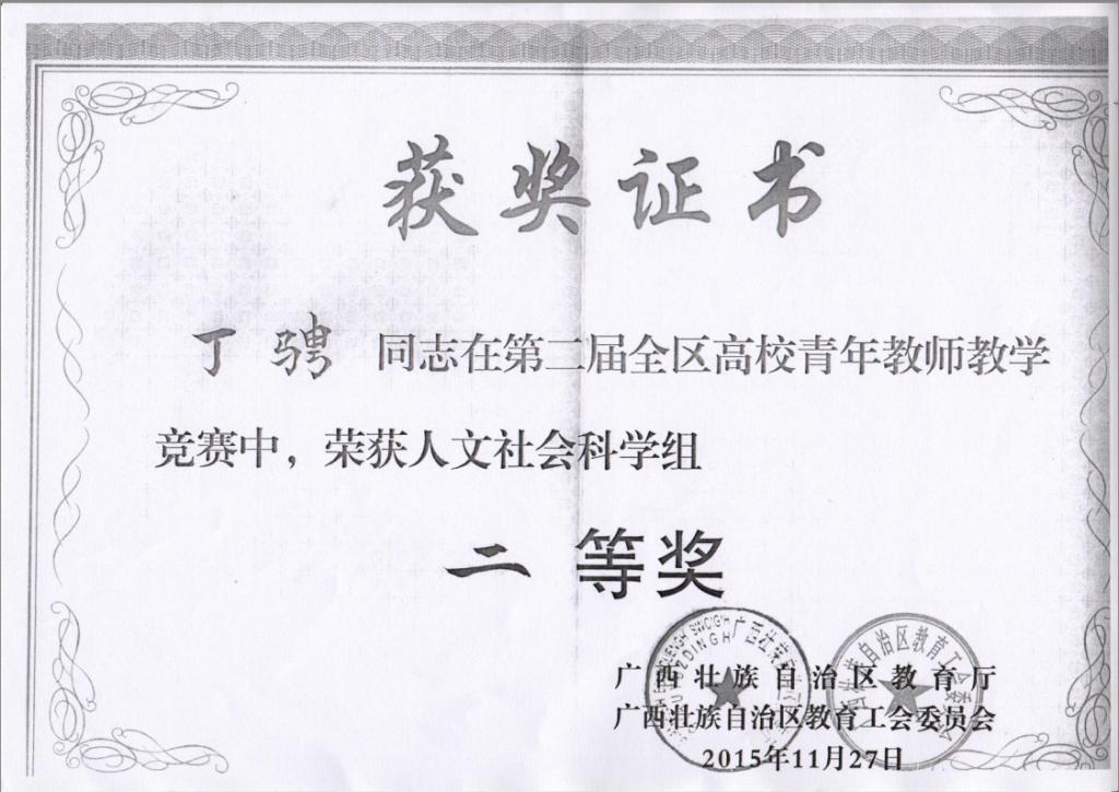 公司丁骋副教授获得第二届全区高校青年教师教学竞赛二等奖