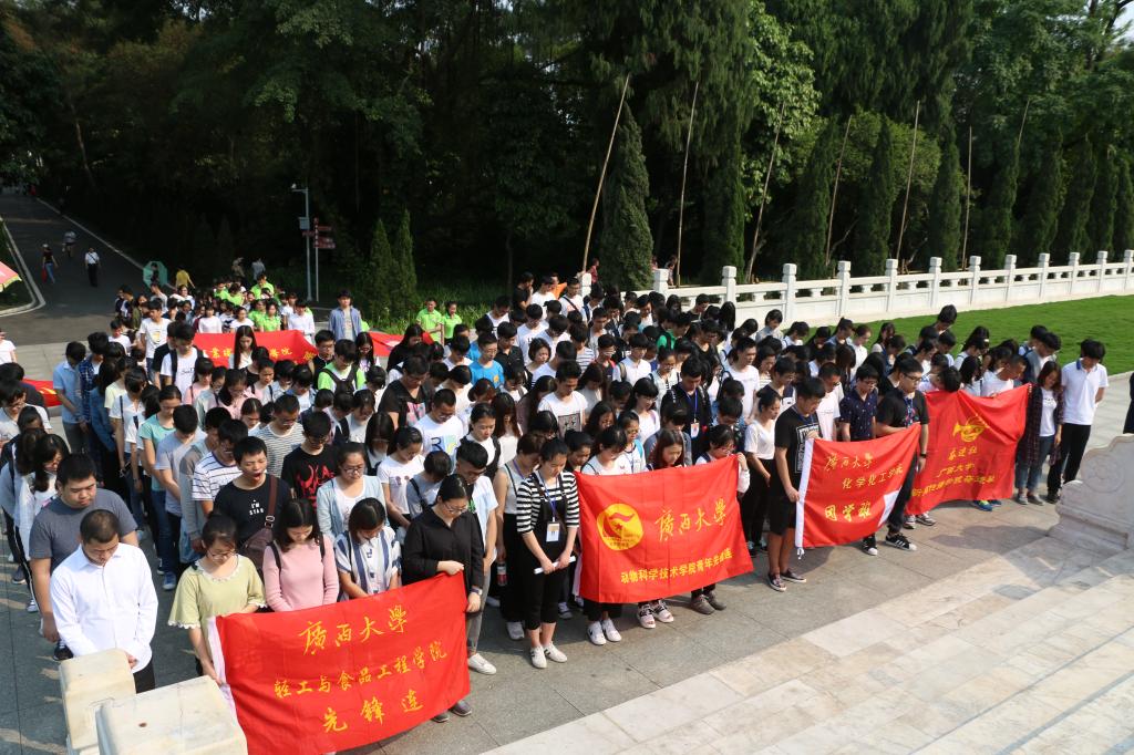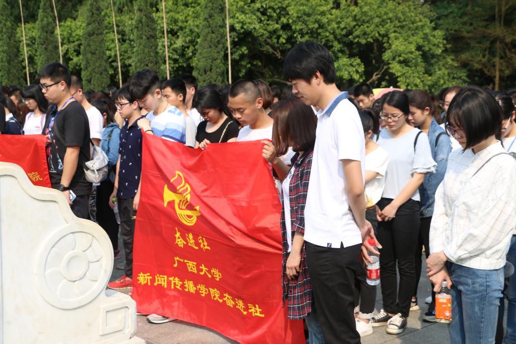 4月9日上午,1949伟德国际源自英国伟德国际1949奋进社与化学化工公司团学班、动物科学技术公司先锋连、轻工与食品工程公司先锋连共同前往南宁市人民公园进行“继承民族优良传统,弘扬英雄奉献精神”清明纪念活动。