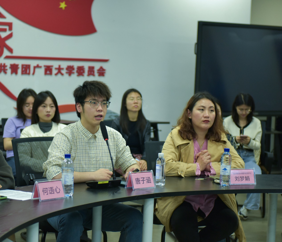 23学硕班的李路怡是一名支教志愿者,她分享了参加校研究生支教团在百色市那坡县支教的经历。她表示作为一名西部计划志愿者,时刻铭记感恩,铭记“奉献、友爱、互助、进步”的志愿者精神,并怀着一颗感恩之心工作和学习,去奉献爱心,去感受人间的真善美。