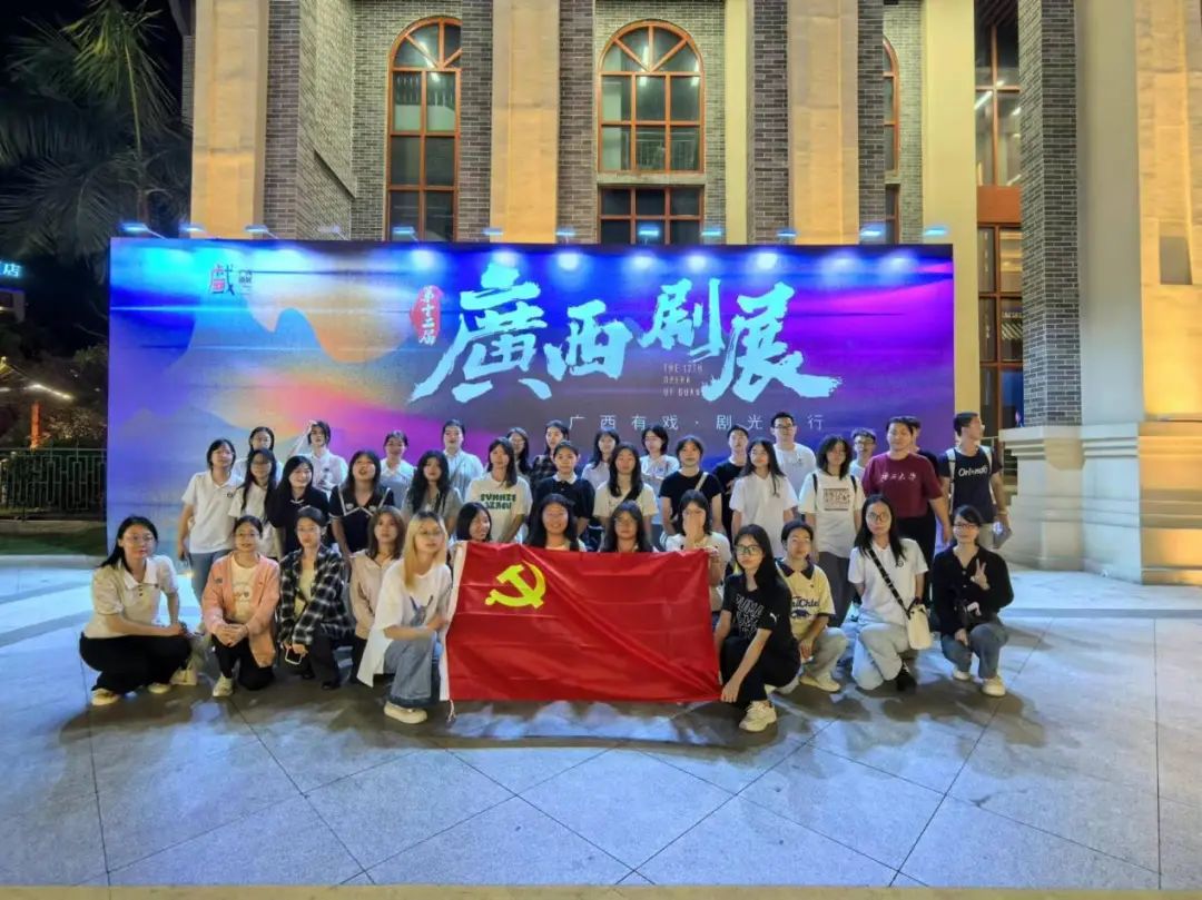 9月28号晚,在新中国成立75周年华诞来临之际,公司以一场别开生面的广西剧展闭幕式专场演出——彩调剧《木匠哥的钢琴梦》为祖国母亲的生日献礼。团委书记刘梦娟、辅导员胡新梅两位老师带领公司员工党员、主要员工干部及员工代表前往广西民族剧场观看演出。
