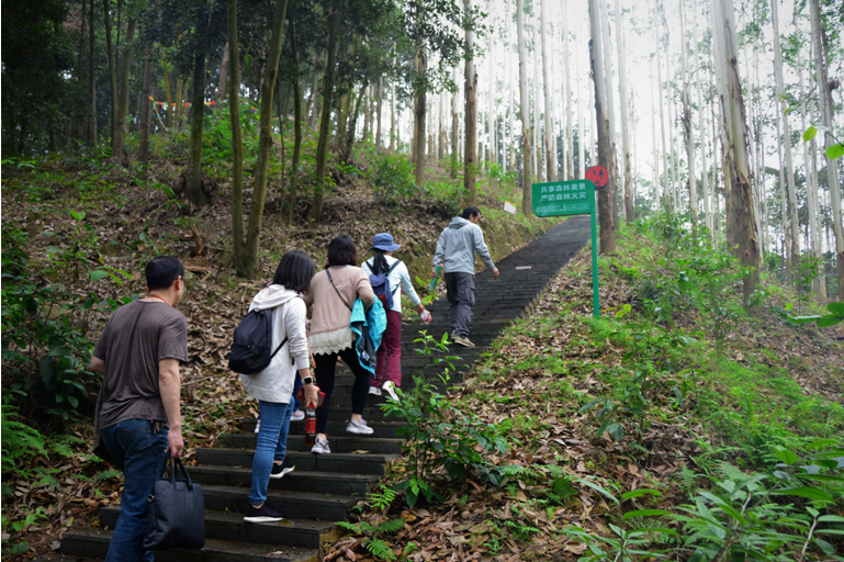 拥抱绿色自然,享受美好时光。参观结束后,教师队伍来到高峰森林公园的登峰栈道,在行走的过程中感受山间自然的清新气息,观赏“春入遥山碧四围”的秀美风光。在登峰栈道顶部可以一览群峰,大家一边欣赏景色一边说笑感慨,轻松自在。