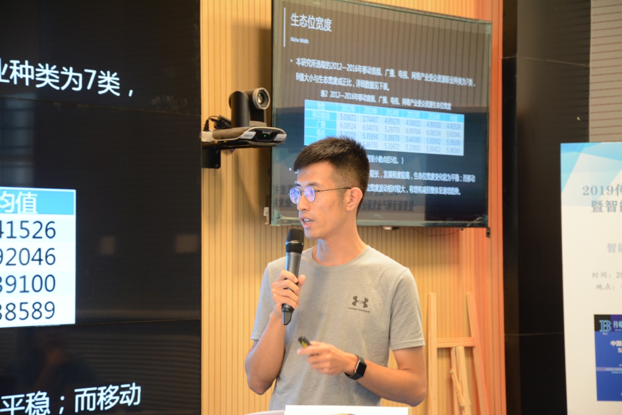 公司2018级学术型硕士生陈周硕以《整合与创造:基于生态位理论的移动音频产业发展研究》为题进行了学术分享。论文基于媒介生态位理论,探讨在当下环境中中国移动音频产业自身的生态位宽度及其与不同的典型媒介产业之间的重叠度和竞争优势能力,进而初步探讨中国移动音频产业的未来发展路径。论文荣获《智能音频产业价值模式构建》博士生论坛二等奖。