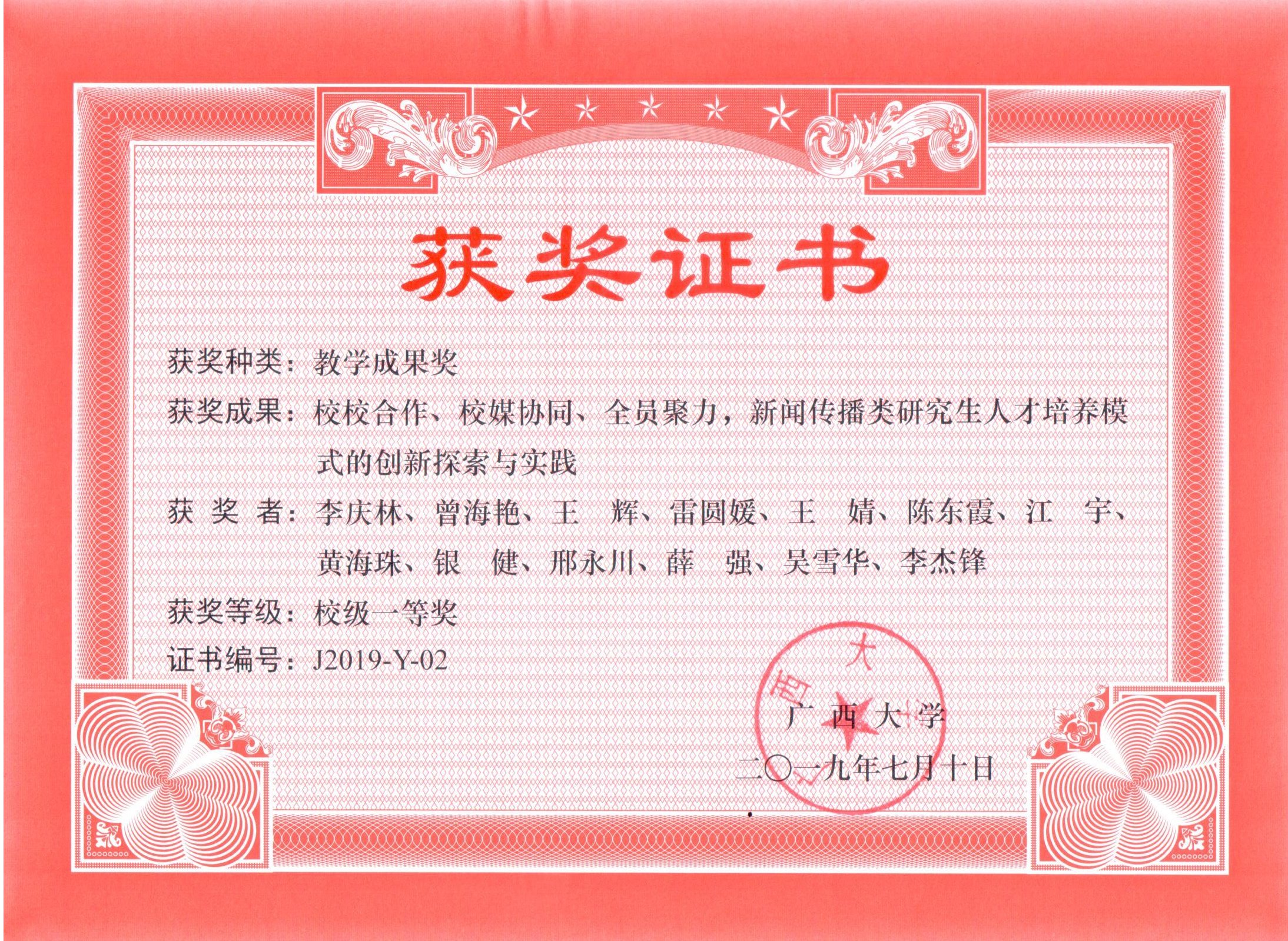 公司研究生教学成果“校校合作、校媒协同、育人为本,新闻传播类研究生人才培养模式的新探索”在2019年度1949伟德国际源自英国教学成果奖评比中荣获一等奖。这份荣誉是对公司自2015年探索与实践该教学模式的极大肯定,也给予了我们在未来的道路上不断开拓创新的鼓励。