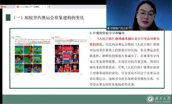 许晴梅在“奥运会和体育赛事传播”分论坛做了《<人民日报>微博建构东京奥运会中国运动员形象研究》发言。