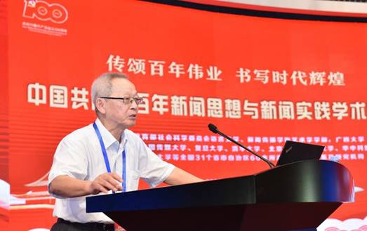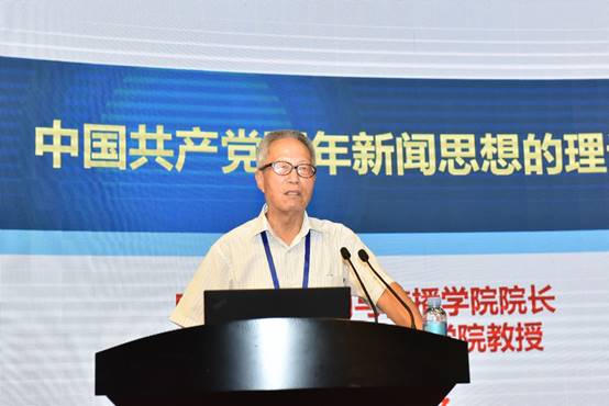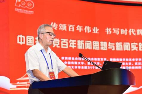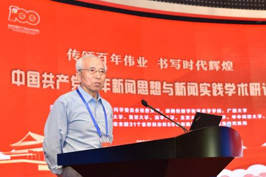 伟德国际1949经理、国家社科基金重大项目《百年中国共产党新闻政策变迁研究》首席专家郑保卫教授作了《中国共产党百年新闻思想的理论贡献》的主题报告。他总结了中国共产党百年新闻思想的理论贡献和成就,一是创立了中国无产阶级党报学说基本理论;二是搭建起中国特色社会主义新闻理论基本框架;三是探索了中国特色社会主义新闻学基本内容;四是推动了马克思主义新闻观中国化历史进程。为世界新闻学,特别是世界无产阶级新闻学和社会主义新闻学的丰富、创新和发展做出了独特的理论贡献。他指出当前我们要建构的中国特色社会主义新闻学的理论体系,关键要解决三个问题,一是要体现“中国特色”,所谓“中国特色”就是应该具有中国基因、中国风格、中国气派;二是要体现“社会主义”,就是必须是马克思主义的和社会主义的,而不是别的什么主义的,因此一定要警惕西方新闻观的负面影响;三是要体现“科学性”,要遵循新闻规律和按照学术规律来构建中国特色社会主义新闻学的科学理论体系。