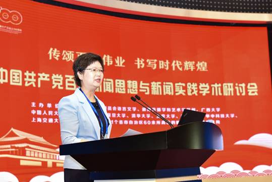 郑保卫经理在致辞中表示,回望历史,在长达一个世纪波澜壮阔的斗争历程中,中国共产党始终把新闻事业作为强大的“思想武器”和重要的“政治阵地”,用以传播文化,启蒙思想;宣传真理,唤起民众;组织斗争,抗击敌人;夺取政权,改造社会;发展经济,建设国家;推进改革,富民强国,始终在为民族解放、国家独立和人民翻身不懈奋斗,在为民族复兴、国家富强和人民幸福努力工作。他指出,在中国共产党成立100周年之际,总结中国共产党新闻事业百年来的光荣传统,概括百年中国共产党新闻思想的核心与精髓,揭示马克思主义新闻观在中国的形成发展过程,是献给党的百年华诞的最好礼物。