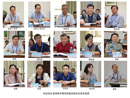 参加第五场分论坛的来自中国传媒大学学报《现代传播》的潘可武,《1949伟德国际源自英国学报》的李小文、《中国广播电视学刊》的陈富清,人民出版社中国理论网的王熙元,《新闻与写作》的李蕾和李佳咪,《青年记者》的赵金,《新闻潮》的覃咏梅,《文化与传播》的刘洪、覃哲等新闻学术期刊的学者,以及来自福建人民出版社的魏清荣、新疆日报社的郑瑜和《陆军航空兵公司学报》的邹晶等学者,分别介绍了各自刊物近年来的发展情况,并围绕“新闻学术期刊的政治担当与学术品质”这一主题展开了深入讨论。他们表示面对百年未有之大变局,面对实现第二个百年伟大目标的历史使命,新闻学术期刊应该大力增强政治意识和大局意识,自觉担当起时代所赋予的使命和责任,坚持用马克思主义新闻观来指导编辑出版工作,同时要遵循新闻传播客观规律和期刊出版学术规范,提升办刊的质量和水平,更好地服务于学术研究、团队建设、传媒发展和新闻教育、人才培养。