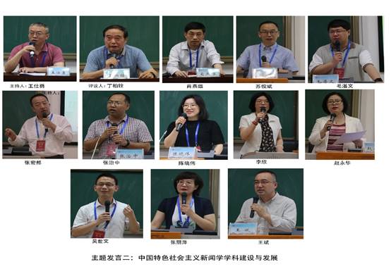 5月23日上午研讨会举行了两场主题发言。主题发言分别围绕“中国共产党新闻思想与马克思主义新闻观”和“中国特色社会主义新闻学团队建设与发展”两个主题展开。