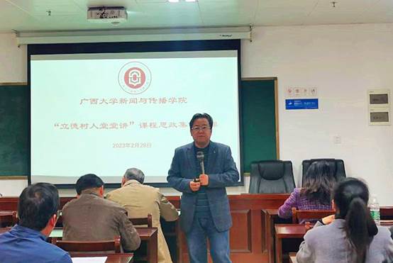 在第二阶段,新闻系李庆林教授、杨名宜博士,广电与新媒体系薛强主任,广告与传媒经济系宋甲子博士在系里的教研活动中,分别对所教课程开展课程思政的情况进行了交流分享,对这些课程进行集体备课。